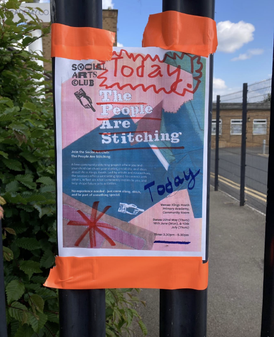 Supported by UON’s Public and Community Engagement fund, West Northamptonshire Council’s Community Safety and Engagement Team, the Community Arts Fund, and Coventry University’s Research Excellence funding (with in-kind support from our research team), we have co-produced wellbeing asset maps (Mapping Kiosk), zines (Kings Heath Calling), a textile banner (The People are Stitching), and a short film (A Good Enough Place).